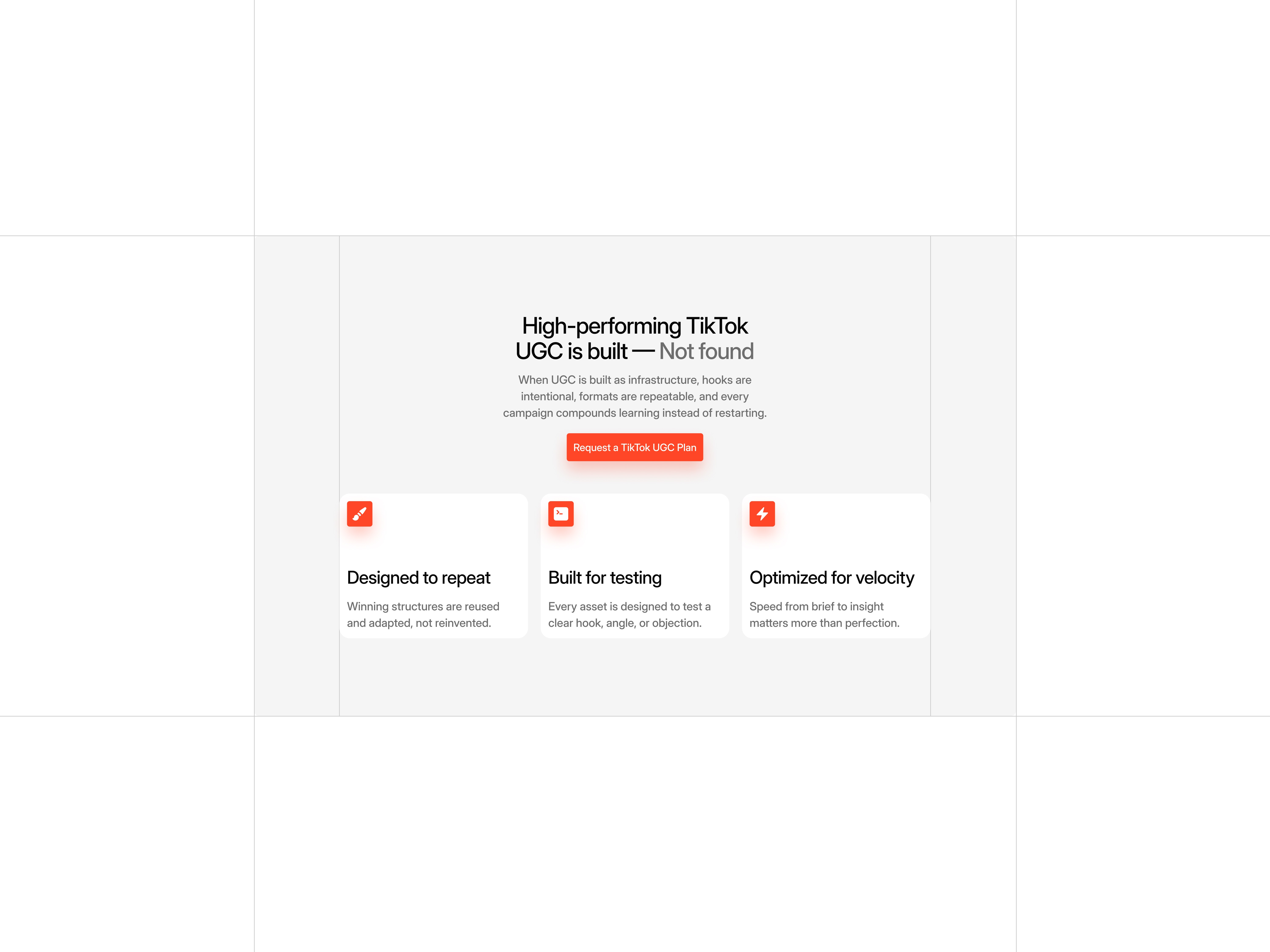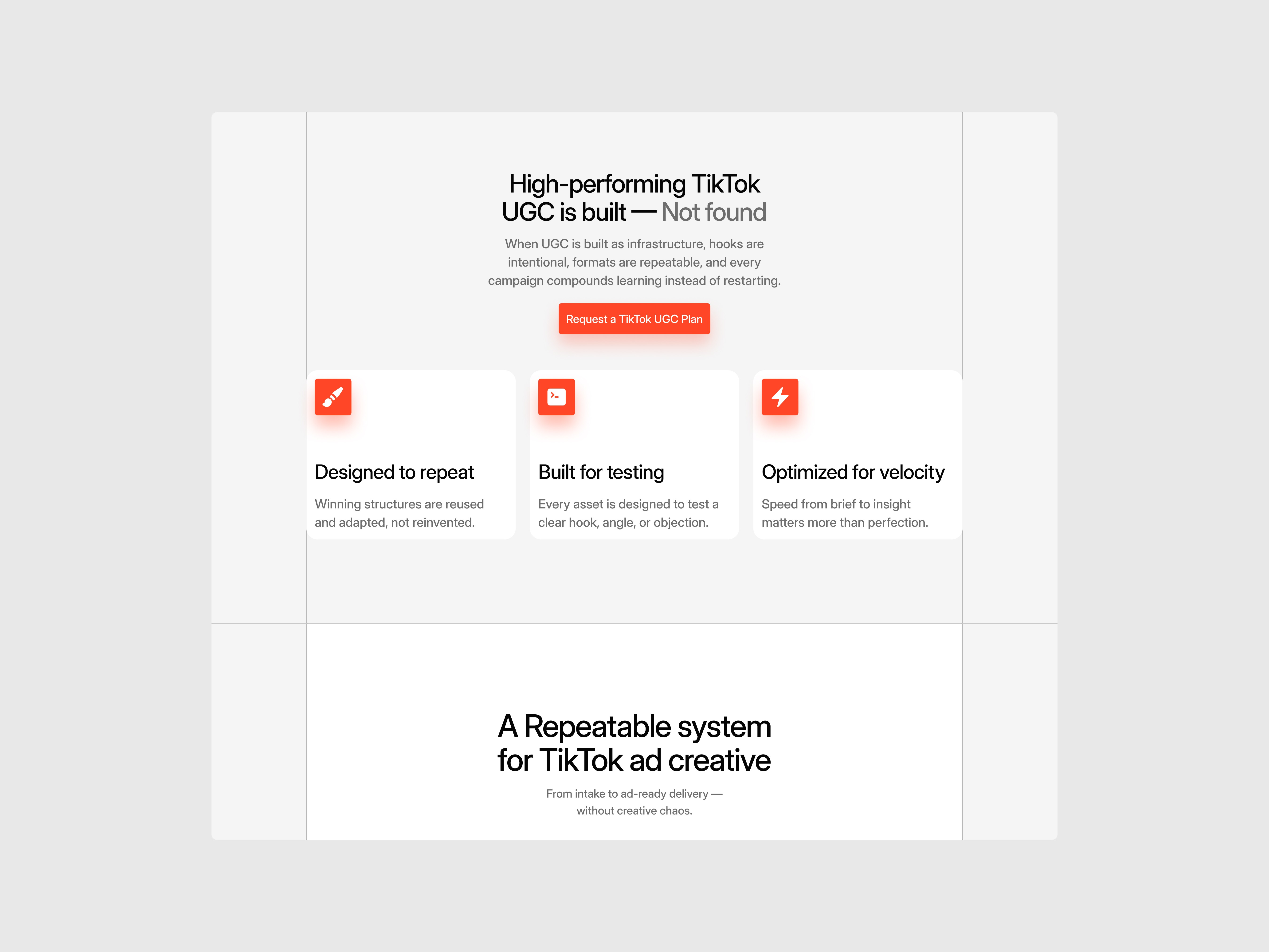 Content is organized to demonstrate how UGC integrates into paid advertising workflows, supported by clear messaging and focused conversion points.